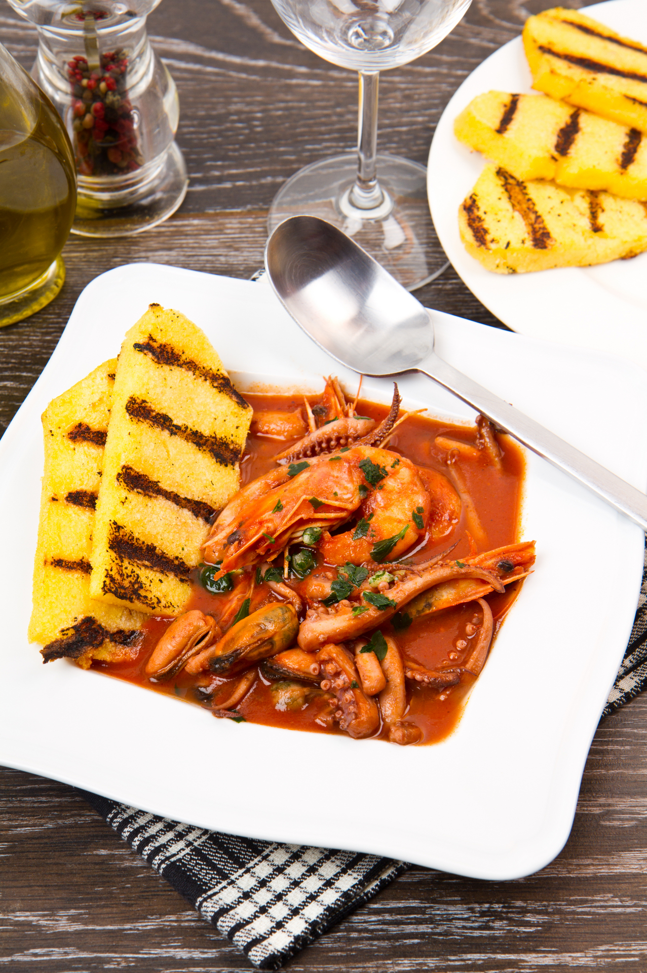 Polenta is a dish from Northern Italy. Polenta is made from cornmeal but it was originally made from other grains. It may be served as a hot porridge, or it may be refrigerated to be set into a loaf that can be baked, fried, or grilled.
